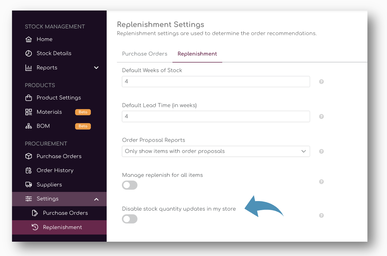 When the tick box is activated, Shelf Planner will no longer update changes to stock quantities in your store.