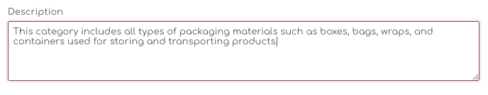 - Example: "This category includes all types of packaging materials such as boxes, bags, wraps, and containers used for storing and transporting products.."