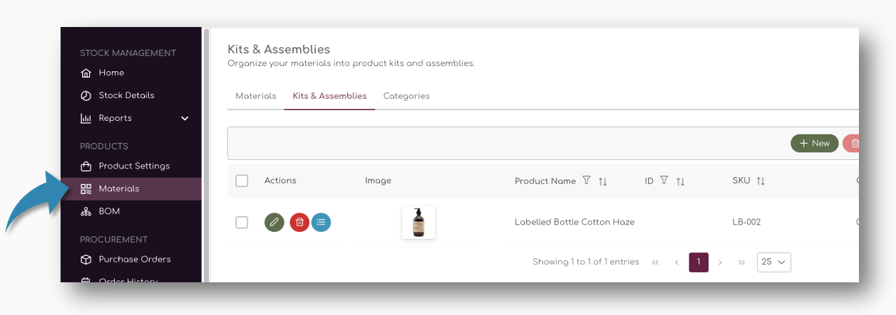 In the dashboard, navigate to the "Kits & Assemblies" page under the "Products" section: