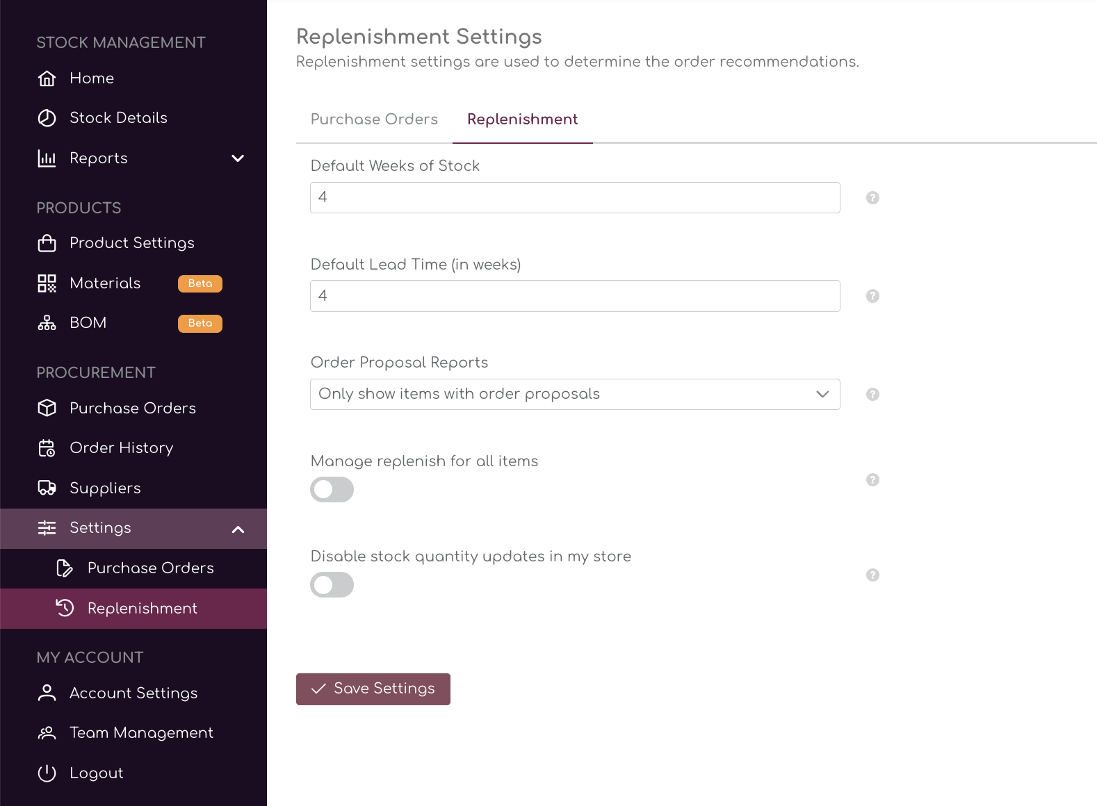 A default Weeks of Stock is required to calculate the Order Proposals, but we recommend to also spend some time and set a Weeks of Stock by product. This will improve the accuracy of the order proposals and ensures you don't stock out on your top sellers.