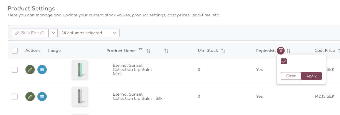 Not all items need replenishment and we have had many request to add a measure that allows for easier filtering across all tables. You can now set a 'Replenishment Flag' for each item which will allow you to exclude them from the tables, but also from all calculations.